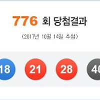 | 제776회 로또 1등 당첨번호 '8, 9, 18, 21, 28, 40 보너스 20' (0) | 2017.10.14 |