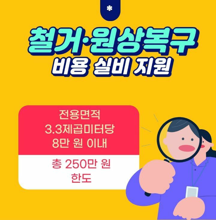 간단히 정리하자면 소상공인공단에서 폐업준비중인 자영업자들에게 폐업 절차 안내, 집기처분도움, 각종신고안내 등의 사업정리컨설팅과 철거. 원상복구 비용을 최대250만원까지 (간판.실내.주방.폐기물 등등) (평당8만원기준) 지원가능.